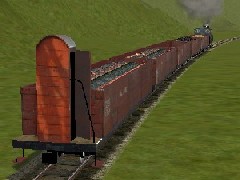 Keskeny nyomközű teherkocsik, üresen és farönk, homok, valamint szén rakománnyal.