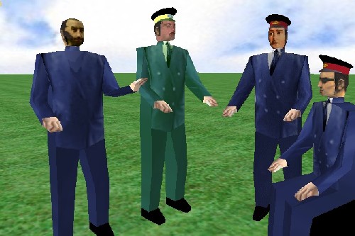 A módszer lényege az, hogy a gőzmozdonyok szerkocsijainál alkalmazott "FreightAnim()" opciót ki lehet használni bármely járműnél, csak a függőleges animáció nem működik, viszont erre úgysincs semmi szükségünk. A gmax-programmal elővarázsoltam a "Hapsi"-t, ezután a modellt már csak pozícionálni kell, és exportálni a kívánt jármű mappájába. Ugyanide kell elhelyezni a "hapsi.ace" textúrát is, amely például a "TgaTool2" programmal tetszés szerint módosítható. Ezután már csak annyi a dolgunk, hogy a kiválasztott jármű ".eng" fájljában elhelyezzük a következő sort: FreightAnim ( hapsi.s 1 1 ). Ezt célszerű még a "Lights" definíció előtt megejteni. A következő indításkor a vonat már vezetővel közlekedik! Hogy ez kicsit bonyolultnak tűnik? Hát el lehet vele játszani...